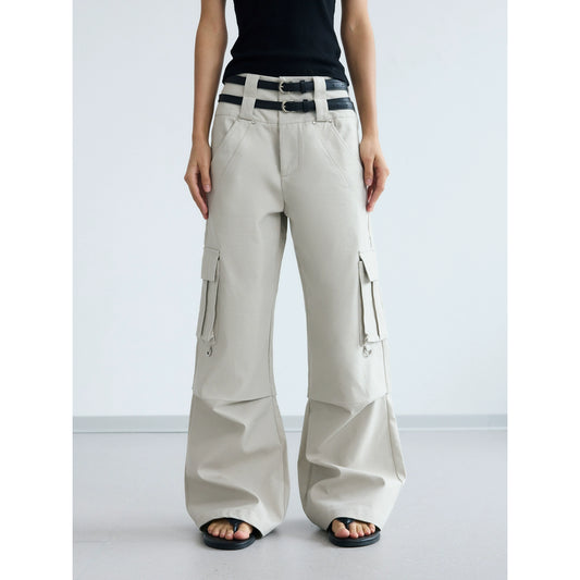 Double Waistband Multi-Pocket Wide Leg Cargo Pants WN18247