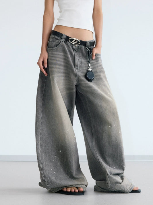 Mud Dye Damage Washed Wide Leg Denim Jeans WN18272