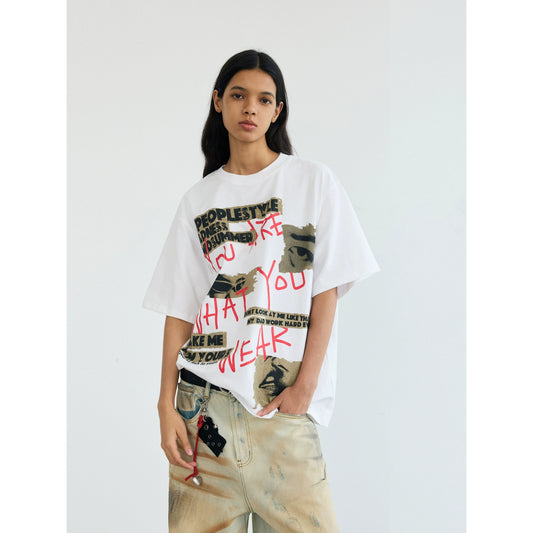 Graffiti Letter Print Short Sleeve T-Shirt WN18209