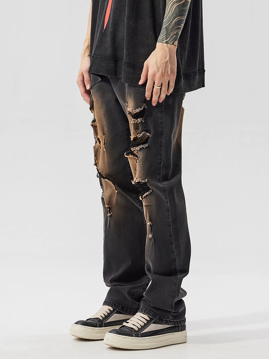 Damage Washed Wide-Leg Straight Denim Jeans WN17610