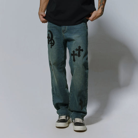 Washed Wide-Leg Straight Denim Jeans WN17615