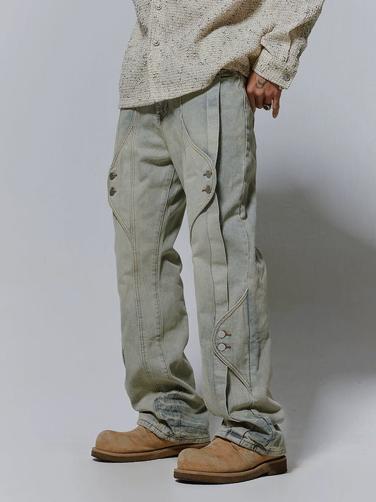 Raw Hem Seam Flare Washed Wide-Leg Straight Denim Jeans WN17611