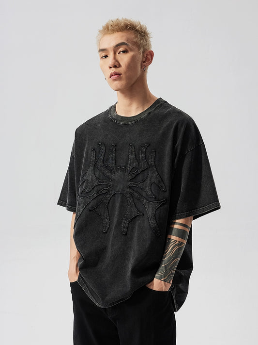 Spider Appliqué Washed Oversize Short Sleeve T-Shirt WN17606
