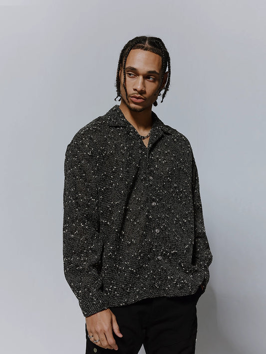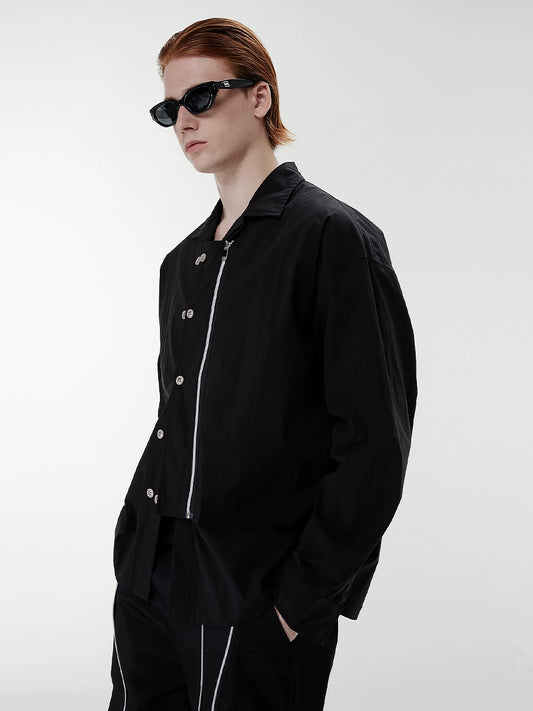 Double Button Zipper Design Oversize Turn-Down Collar Long Sleeve Shirt WN17554