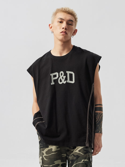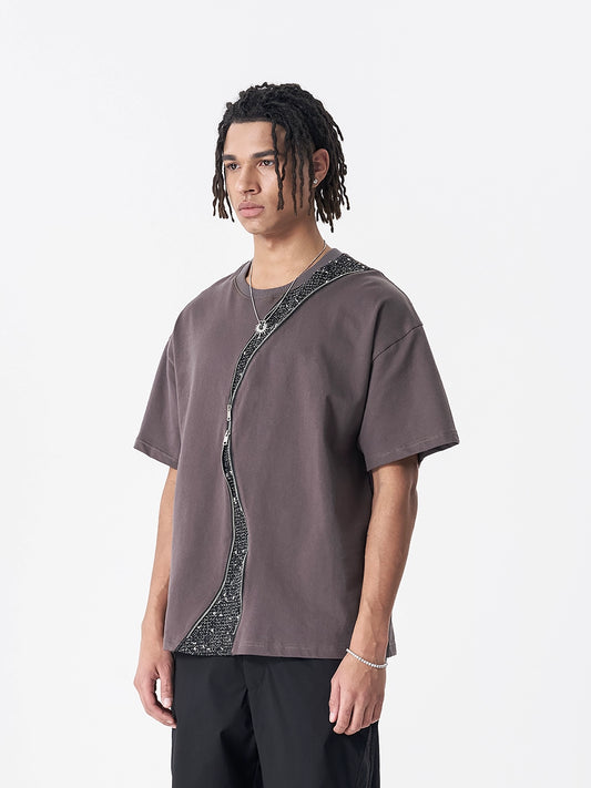 Zipper Deconstruction Patchwork Short Sleeve T-Shirt WN17532