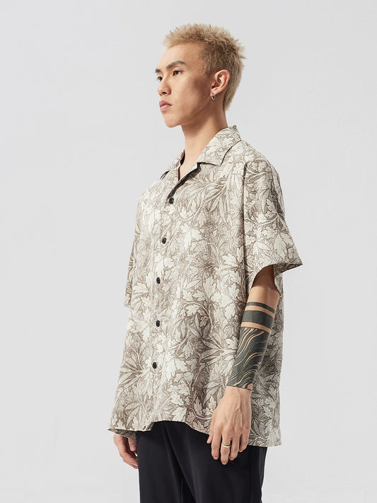 Floral Print Turn-Down Collar Short Sleeve Shirt & Long Sleeve Shirt WN17562