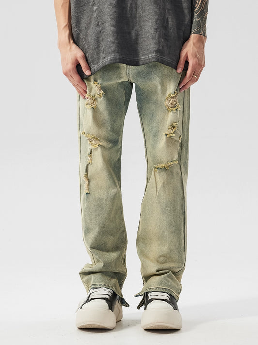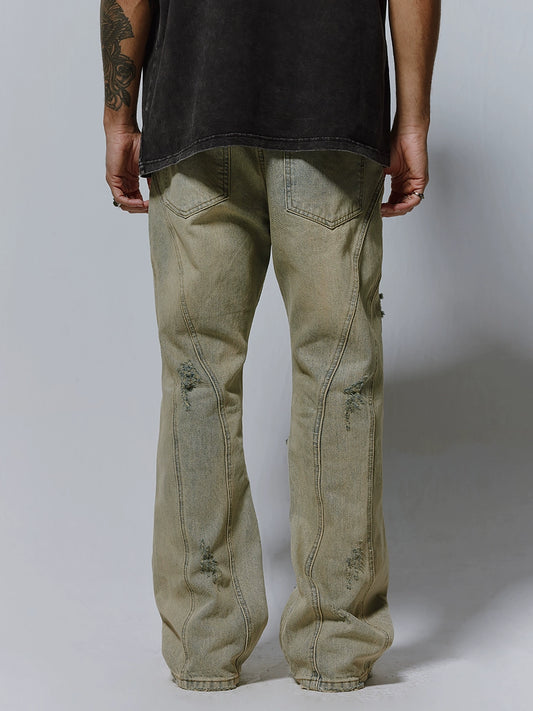 Dirty Dye Damage Wash Flare Denim Jeans WN17534