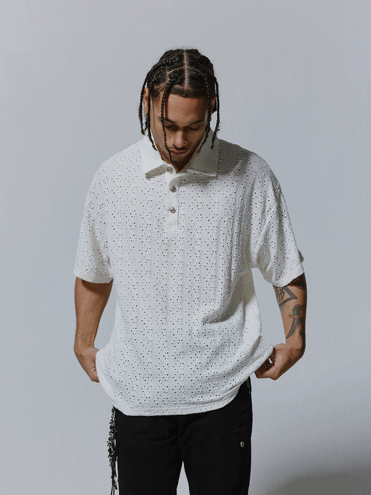 Hollow Design Oversize Short Sleeve Polo Shirt WN17549