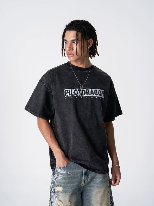 Washed Logo Letter Print Heavyweight Short Sleeve T-Shirt WN17528