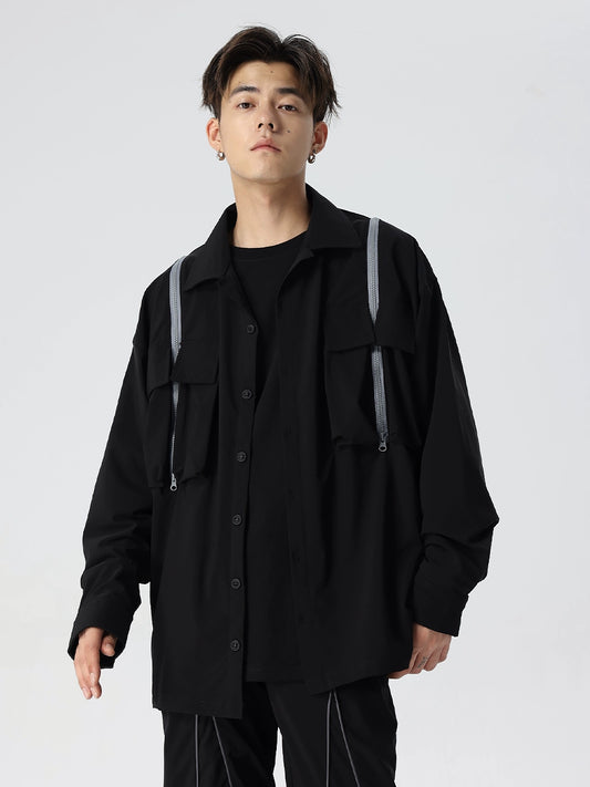 Suspender Zipper Design Long Sleeve Shirt WN17468