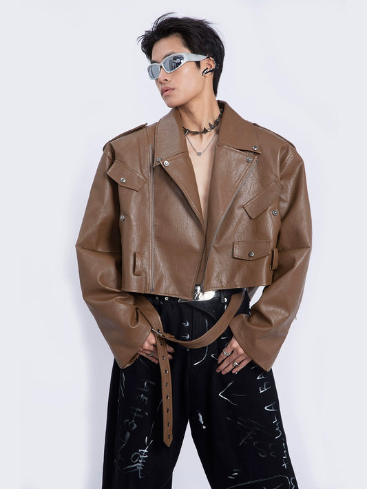 Metal Zipper Detailing PU Leather Tailored Jacket WN9370