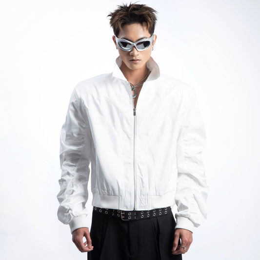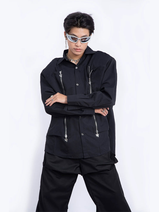 Double Zipper Shoulder Pad Long Sleeve Shirt WN9362