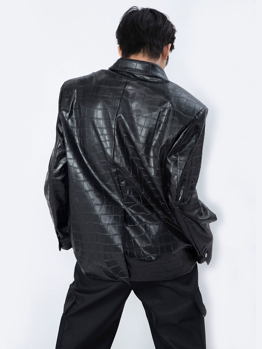 Glossy PU Leather Shoulder-Pad Jacket WN20635