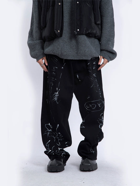 Hand Paint Graffiti Wide-Leg Denim Jeans WN9353