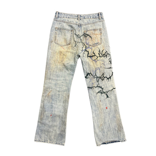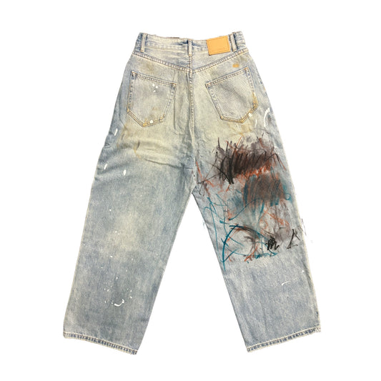 Graffiti Spray Paint Wide Leg Denim Jeans WN16826