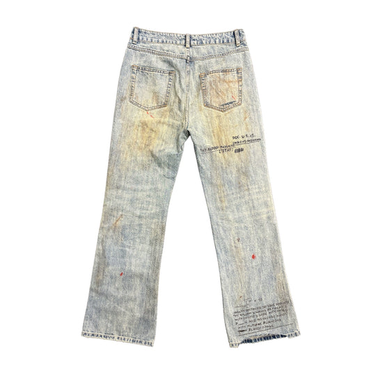 Spray Dye Damage Letter Design Wide Leg Denim Jeans WN16825