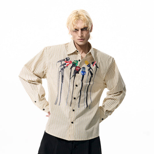 Patch Embroidery Stripe Long Sleeve Shirt WN20759