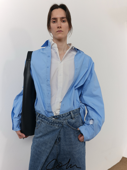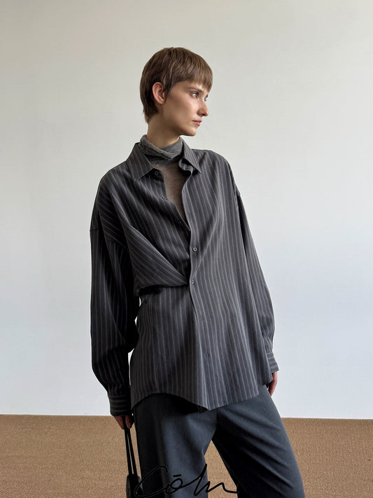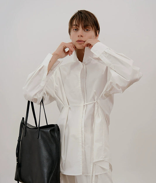 Sheer Draped Oversize Long Sleeve Shirt WN20643