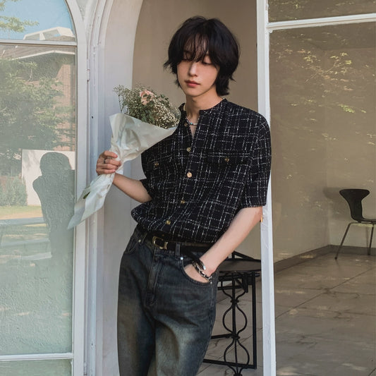 Textured Raised-Collar Short Sleeve Shirt WN20172