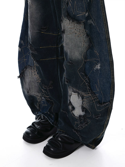 Chunky Sole Dirty Wash Denim Canvas Shoes WN20781