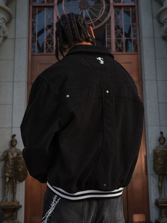 Studded Cross Patchwork Corduroy Jacket WN11999