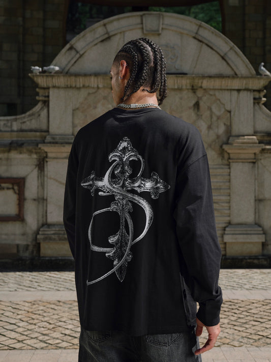 Black & White Cross Graphic Long Sleeve T-Shirt WN11971