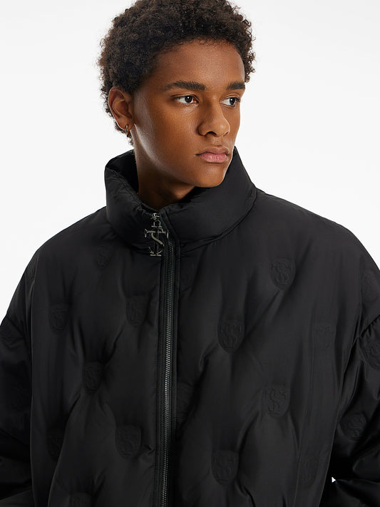 Graffiti Damage Stand Neck Puffer Jacket WN11941