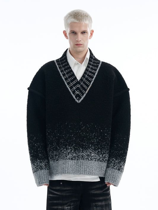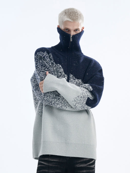 Gradient Half Zipper High-Neck Knit Sweater WN10715