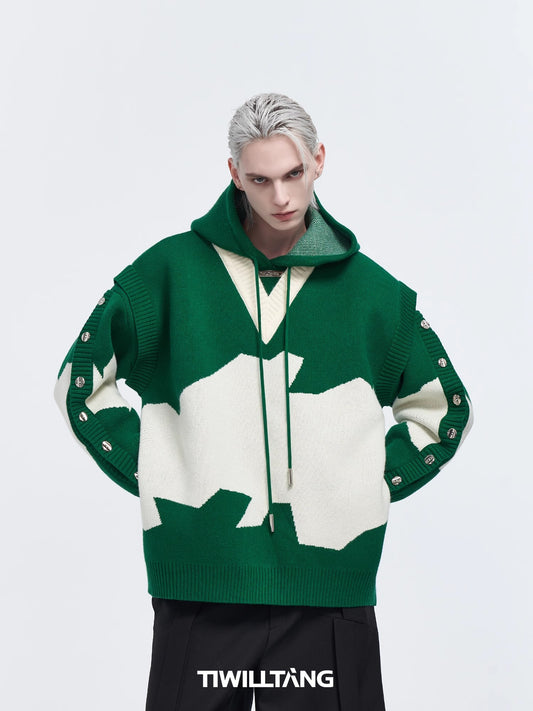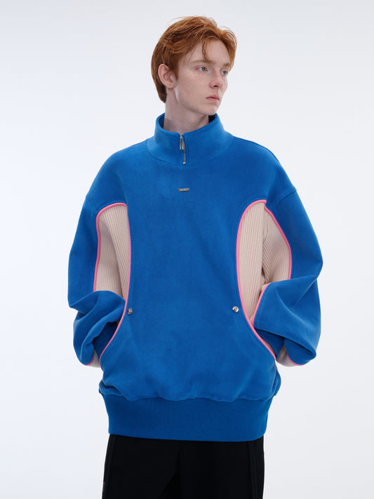 Contrast Patchwork Textured Fleece Knit Sweater WN10699
