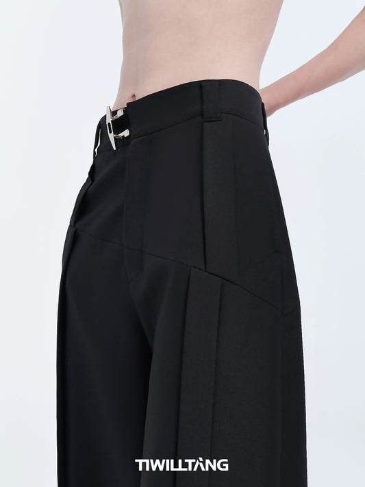 Metal BuckleWide-leg Pleats Trousers WN10705