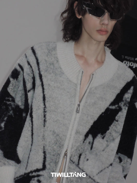 Fake Mink Jacquard Knit Zipper Cardigan WN10719