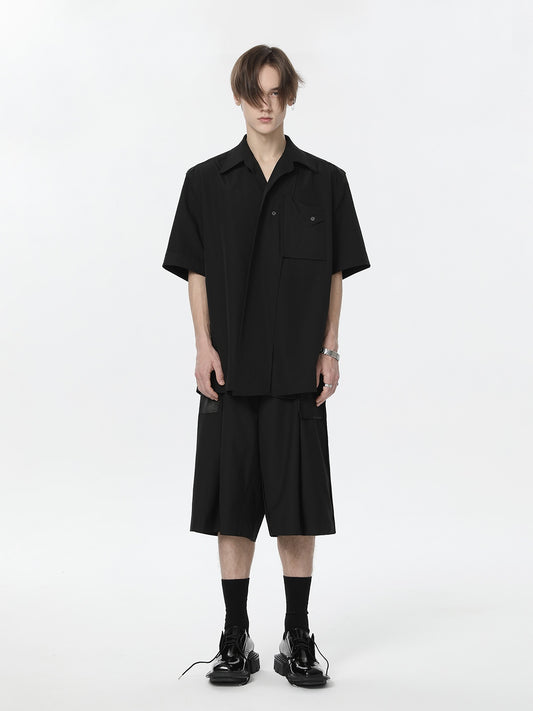 Sailor Collar V-neck Long Sleeve Shirt & Short Sleeve Shirt & Wide Leg Trousers & Short Trousers Setup WN10704