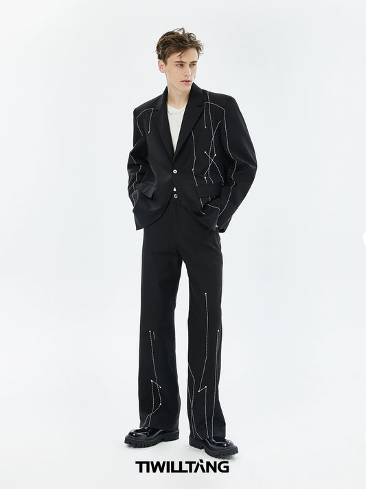 Satin-Panel Tailored Jacket & Satin-Panel Trousers Setup WN10682