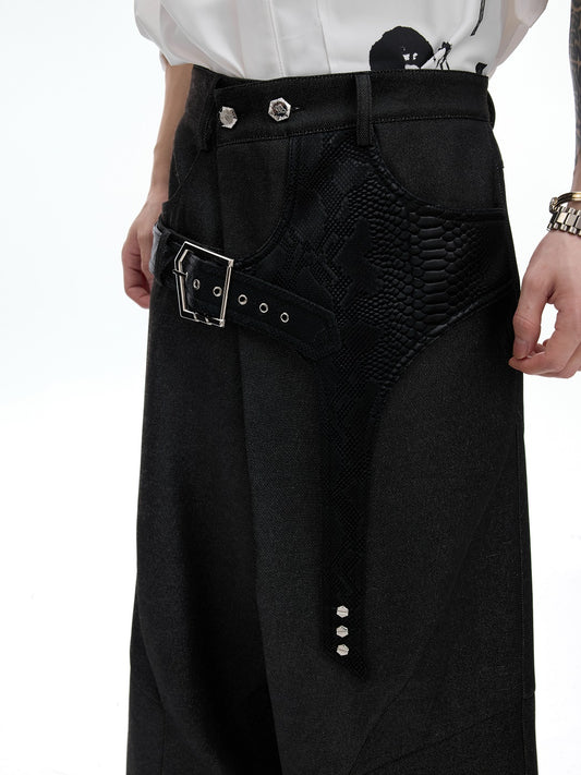 Crocodile Pattern Belted Wide Leg Straight Trousers WN20523