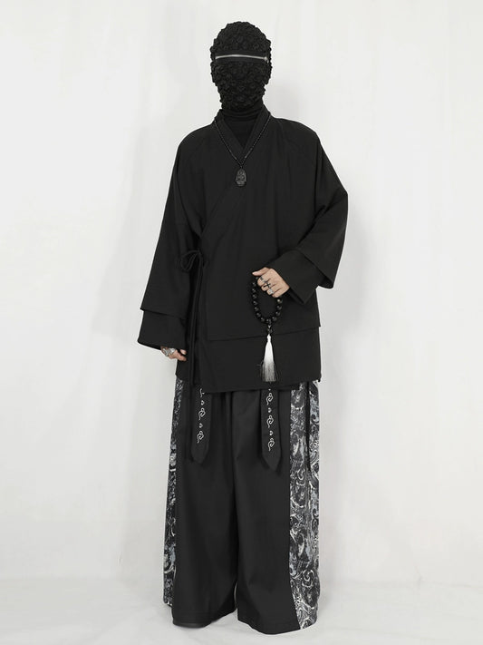 Asymmetric Layered Wide Leg Trousers & Belt & Chain WN20093