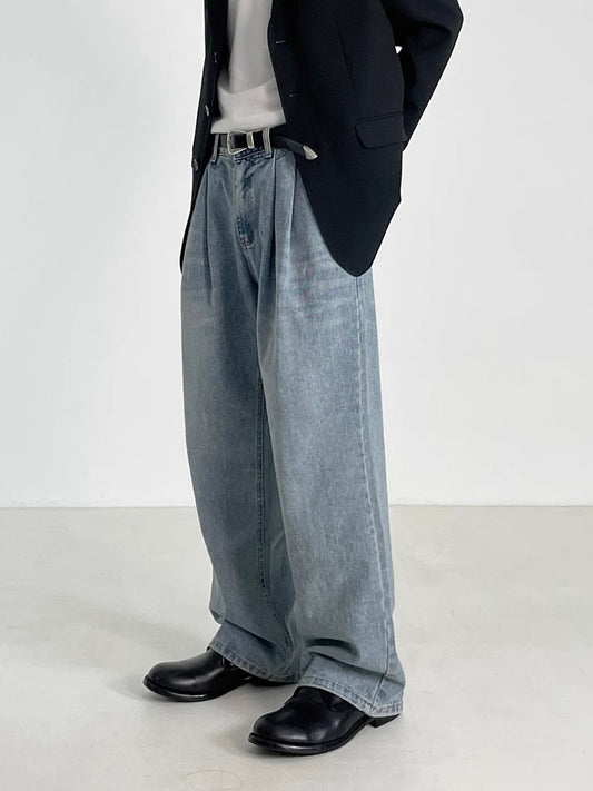 Washed Wide-Leg Pleats Denim Jeans WN6594