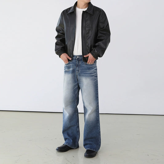 Yellow Mud Washed Wide-Leg Straight Denim Jeans WN6703