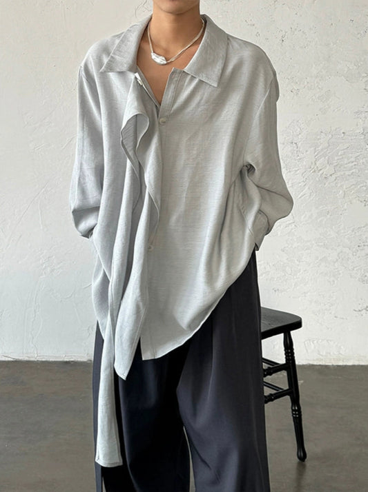 Standing-Collar Irregular Neckline Elegant Long Sleeve Shirt WN19983
