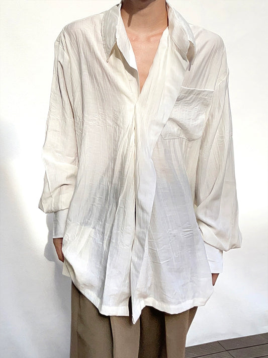 Texture Pleats High-Neck Long Sleeve Shirt WN20034