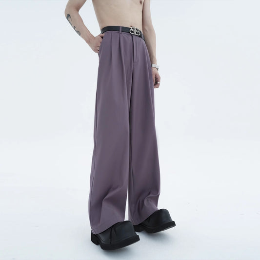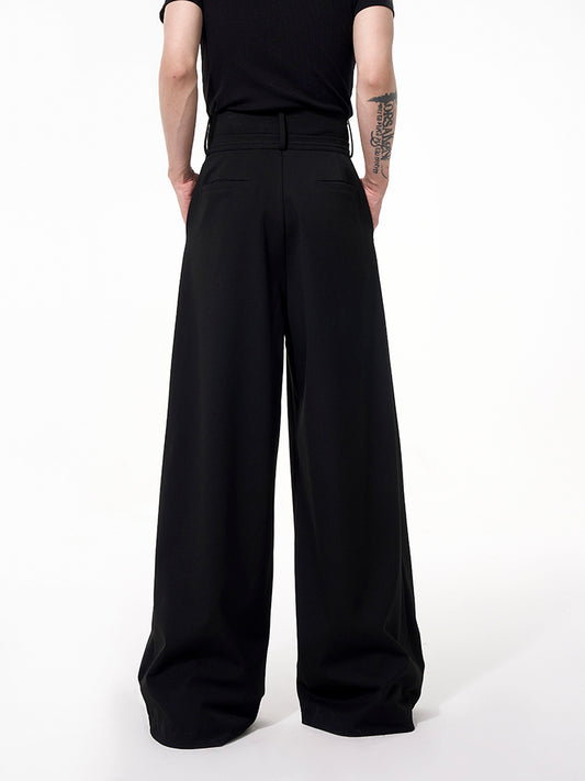 Double Waistband Drape Straight Wide-leg Trousers WN14825
