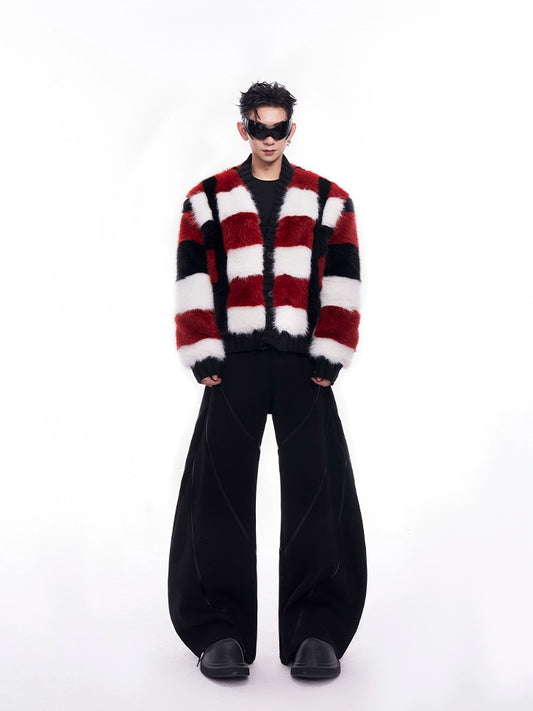 Fake Fur Quilted Collarless Knit Cardigan WN11685
