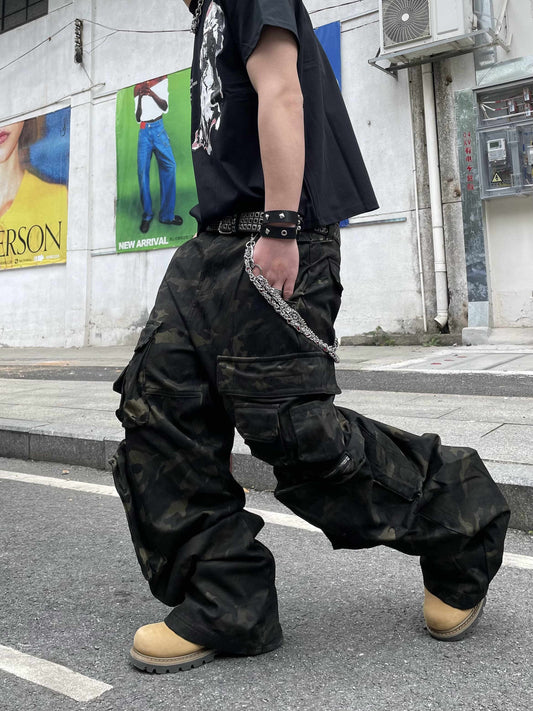 Camouflage Multi-pocket Cargo Wide-Leg Denim Jeans WN14996
