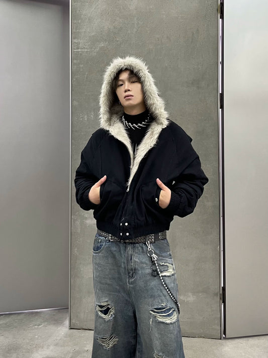 Fake Fur Collar Short Hooded Puffer Jacket WN9401