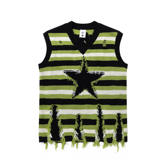 Striped Frayed Hem Knit Vest WN11410