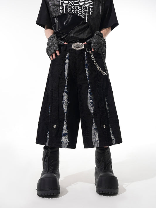 Snake Pattern Batwing Strap Hooded Jacket & Half Pants & Sleeveless Vest Jacket Setup WN14891