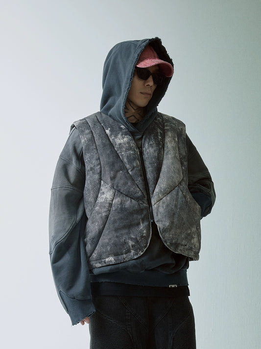 Wax-Dyed Washed Pleats Asymmetrical Hooded Vest WN13991