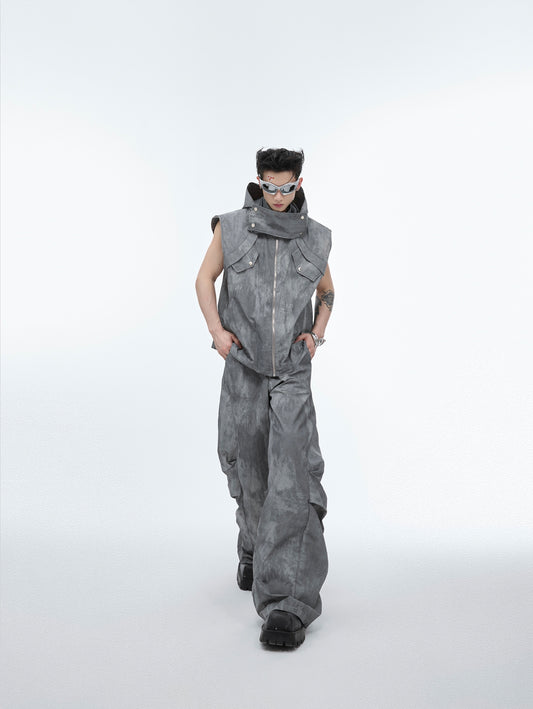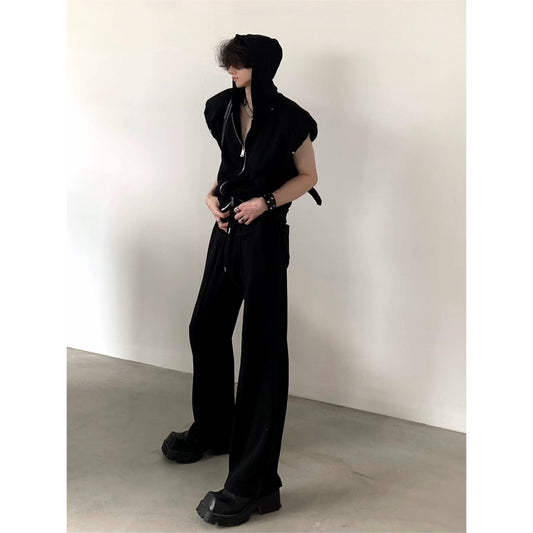Zipper Hooded Sleeveless Jacket & Workwear Wide-Leg Straight Pants Setup WN6490