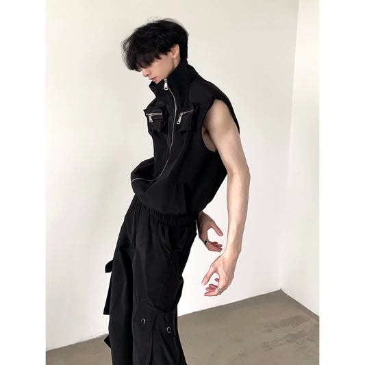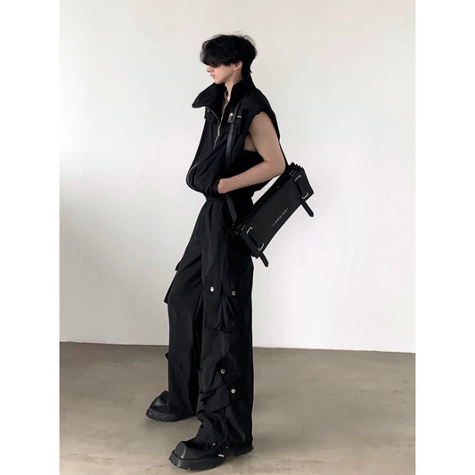 Workwear Sleeveless Zipper Vest & Wide Leg Cargo Pants Setup WN7043