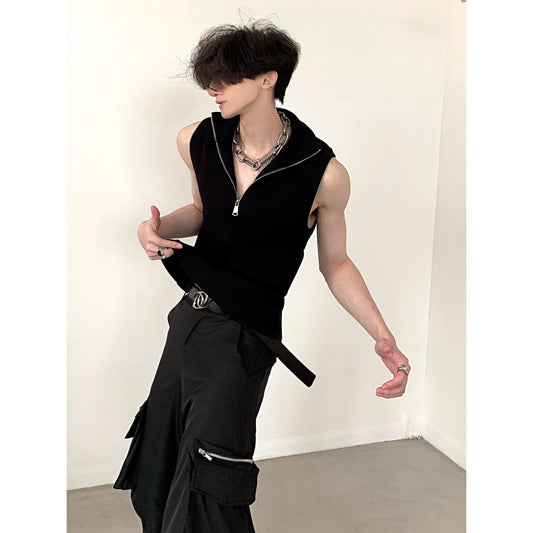 Zipper Shoulder Pad Hooded Sleeveless Vest & Casual Sweatpants Setup WN6001