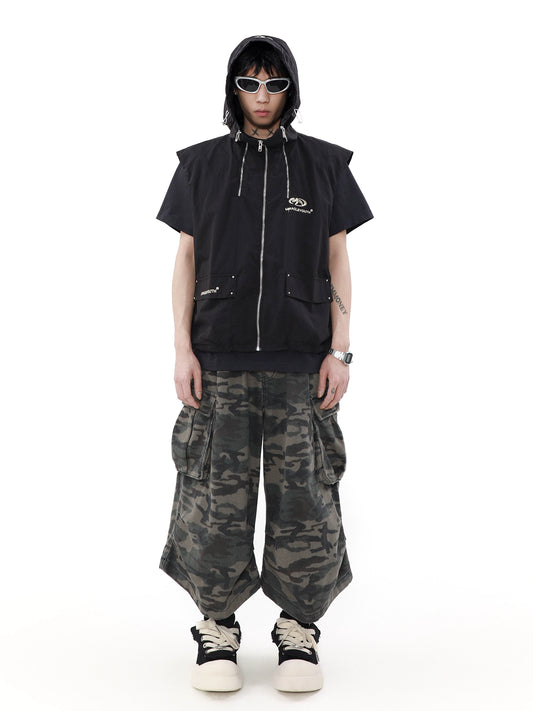 Deconstructed Utility Zipper Jacket & Vest & Cargo Pants Setup WN9200